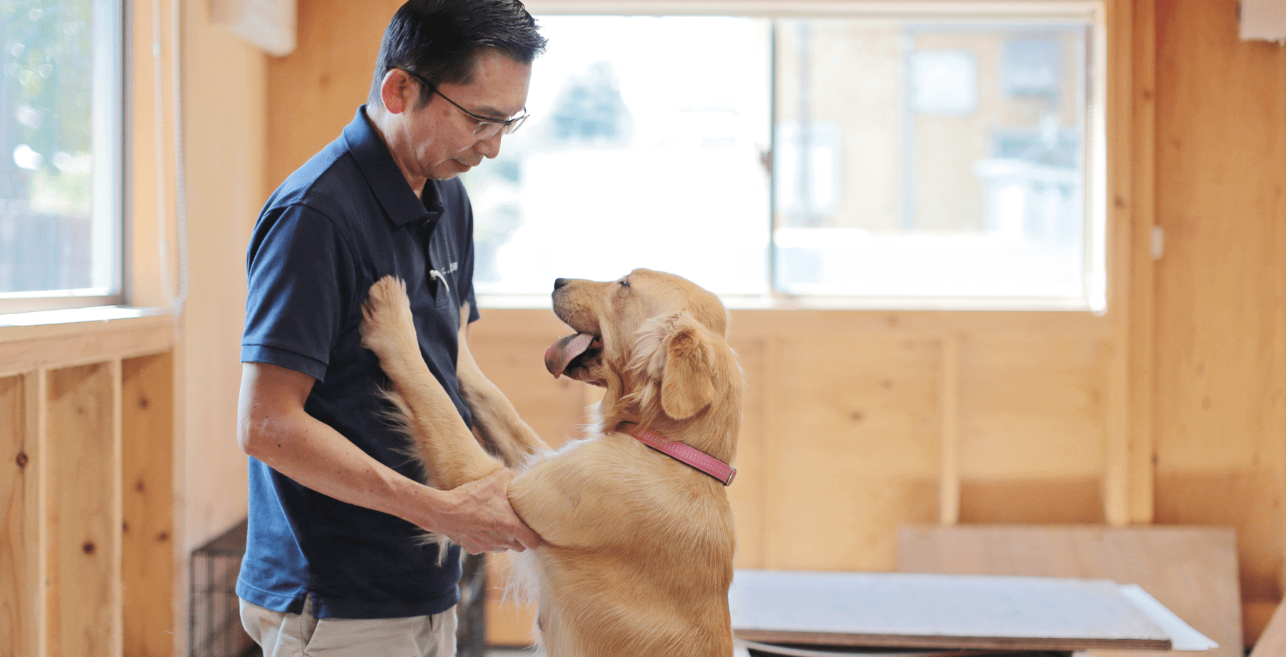 この日、藤原さんは、出産や子犬のお世話をしたゴールデンレトリバー「クーナ」に久しぶりに再会しました。クーナも藤原さんに気づくと、久しぶり!と飛びかかります。嬉しそう。